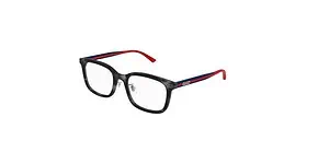 Stylish Gucci eyeglasses with black and red frame, perfect for fashion-forward eyewear.